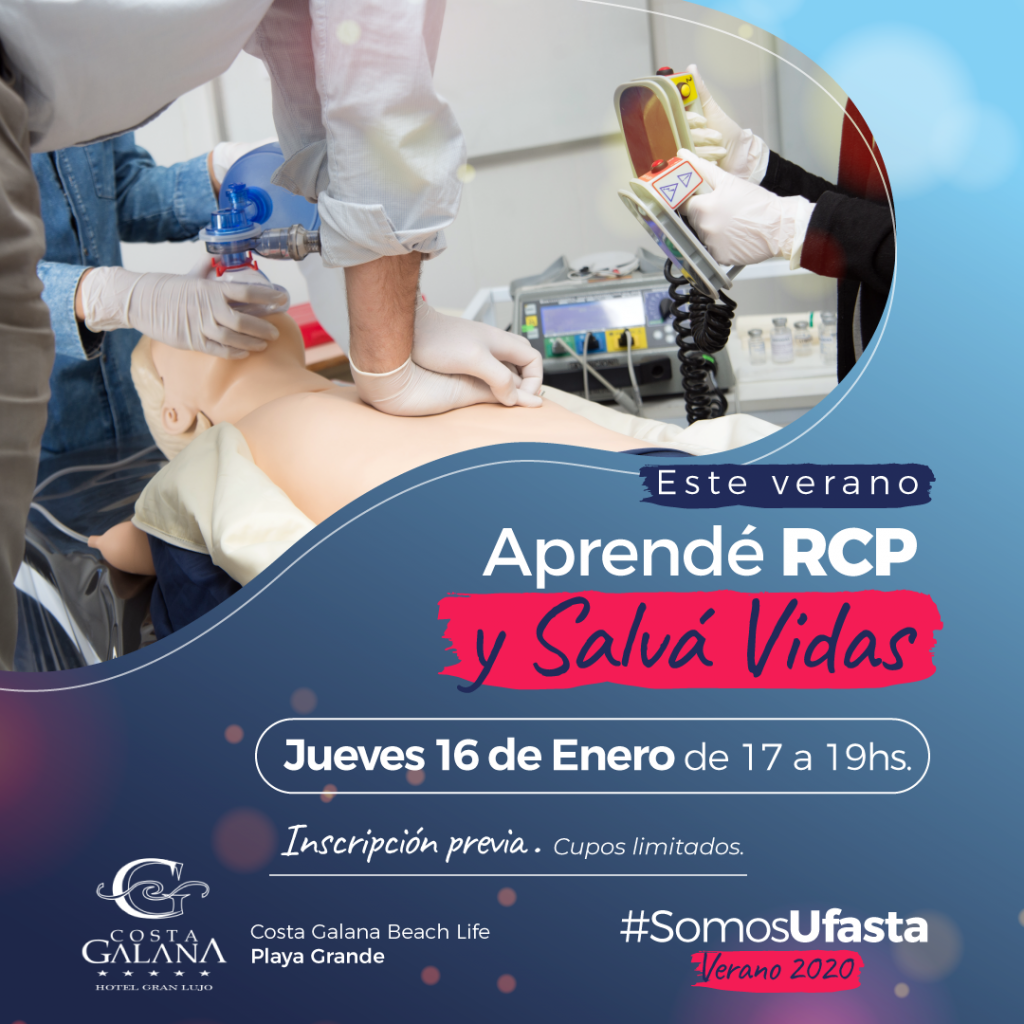 El jueves 16 de enero a las 17hs se realizará una capacitación gratuita en RCP. Dicha actividad se desarrollará en el marco de la acción promocional “Somos UFASTA verano 2020” que se encuentra realizando la Universidad Fasta en el Balneario “Costa Galana Beach Life” ubicado en Playa grande.