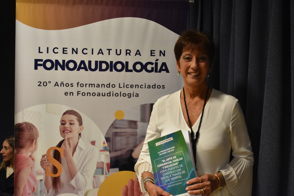 Por el día del Fonoaudiólogo, la Facultad de Ciencias Médicas celebró el pasado 12 de mayo un evento en el Auditorio de la Universidad, en el cual la licenciada Graciela Moscardi presentó su libro titulado El arte de comunicar, hablar y escuchar, como puentes de construcción social a través de los tiempos. El libro, terminado durante la pandemia, es el primero en ser revisado y editado por autoridades de la Licenciatura en Fonoaudiología de la UFASTA.