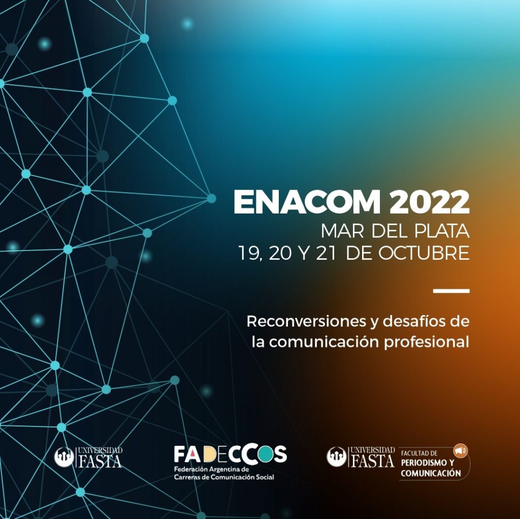 Bajo el título «Reconversiones y desafíos de la comunicación profesional«, el ENACOM 2022 se propone abordar un contexto desafiante para la comunicación profesional, no solamente en términos de la constante dinámica propia de una disciplina que cambia y se modifica producto de innovaciones tecnológicas y proliferación de herramientas, sino porque hay muchos aspectos políticos, sociales, culturales y simbólicos en tensión, que obligan al pensamiento profundo sobre sus alcances y consecuencias para la profesión del comunicador.
