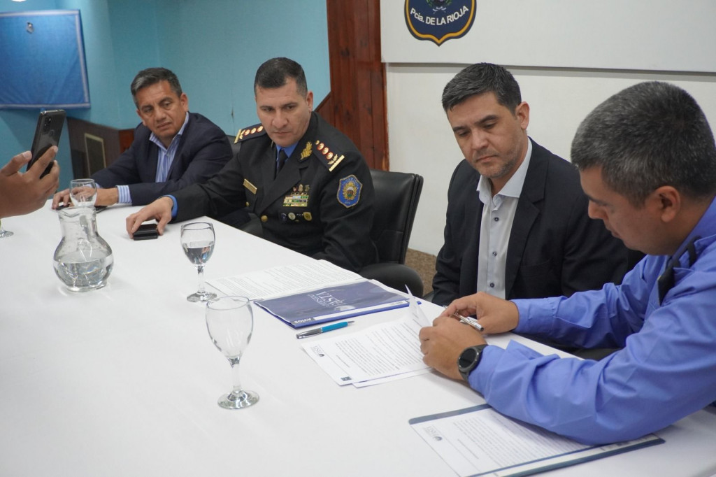 La reunión que concluyó con la firma del acuerdo contó con la participación de altos mandos de la Policía de la Provincia de La Rioja –el Crio. Gral. René Omar Molina– y el Círculo de Oficiales riojano –el presidente Pablo Arrieta–, así como con el Coordinador de la Unidad de Apoyo Académico riojana, Tec. Ariel Díaz.