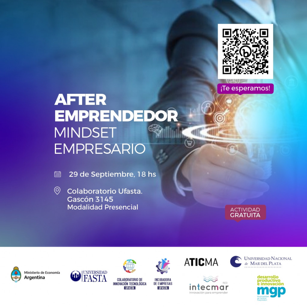 El próximo After Emprendedor se realizará el 29/09 a las 18 hs. en el Colaboratorio de la Universidad FASTA. Será una gran oportunidad para conocer más proyectos, recibir asesorías por parte de profesionales, intercambiar ideas y divertirse con otros emprendedores.