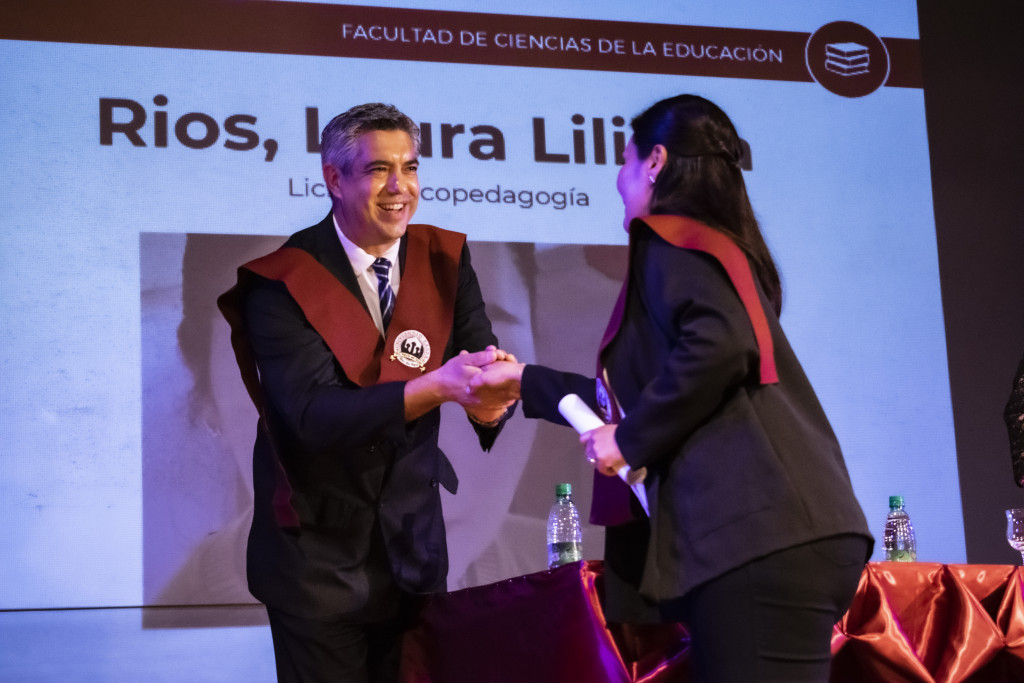 Durante el acto, en calidad de graduada distinguida, la Lic. Candela Analía López, realizó un discurso en el que afirmó “quiero dar gracias a quien de manera incondicional nos ha acompañado a lo largo del trayecto formativo que tiempo atrás decidimos emprender, nuestro Padre Celestial. Hoy, es Él quien se lleva el mayor reconocimiento, porque con amor nos ha sostenido, provisto de sabiduría, renovado las fuerzas cuando sentíamos que no seríamos capaces de seguir”.