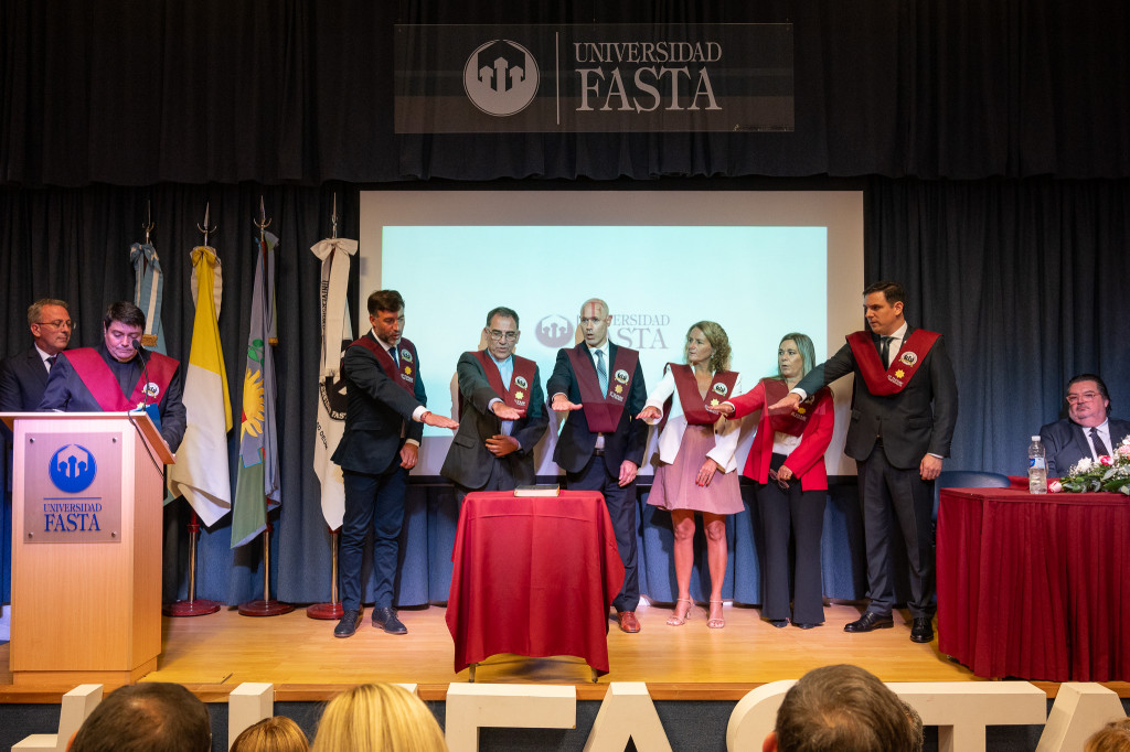 El acto fue el escenario para la designación de diversas autoridades académicas, incluyendo al rector, vicerrectores, decanos y secretarios, quienes asumieron solemnemente sus responsabilidades. En este sentido, la Presidencia de Fasta confirmó en su cargo al Dr. Juan Carlos Mena por un nuevo período rectoral de cuatro años.