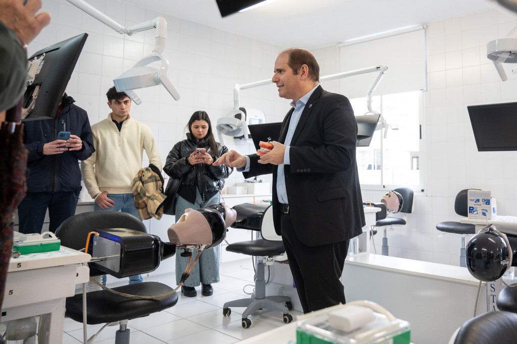 “Para que tomen dimensión, la carrera tiene 4.300 horas y 1.400 de ellas son prácticas con pacientes. Gracias a esto, la Universidad invirtió en este Centro, donde los estudiantes cuentan con las mejores herramientas para formarse en su profesión. Algo importante a decir, es que es el primer Centro Odontológico universitario y es un orgullo para nuestra carrera”.